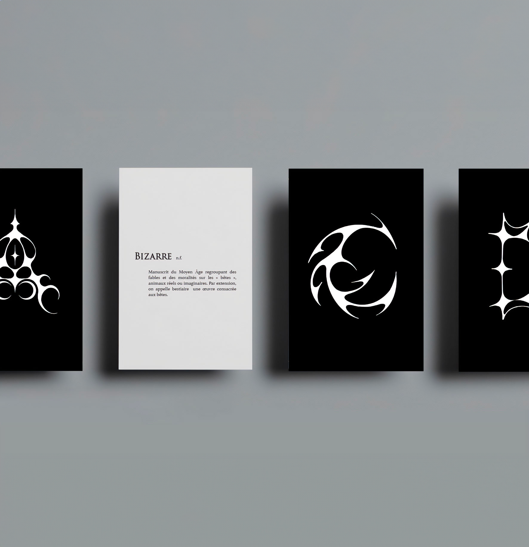 Création d’une typographie et son abécédaire inspirés par l’univers de la «Dark Fantasy», un sous-genre littéraire de fantaisie. Ce genre désigne généralement des œuvres prenant place à l’époque médiévale dans une ambiance sombre voire pesante, à l’univers presque indéfinissable.